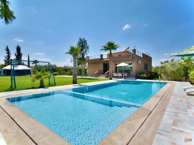 Verbringen Sie einen unvergesslichen Aufenthalt im Ferme de vacances avec une grande villa à Marrakech in Marrakesch. Die klimatisierte Villa bietet Ihnen einen eigenen Pool und kostenfreie Parkplätze. Genießen Sie den Komfort von 2 Schlafzimmern, einem Wohnzimmer, einer voll ausgestatteten Küche und 2 Badezimmern. Entspannen Sie auf der Terrasse und genießen Sie den Blick auf den Pool. Das Hotel bietet zudem einen Kinderspielplatz und einen Innenpool. Erkunden Sie die Sehenswürdigkeiten von Marrakesch, wie die Menara-Gärten und den Bahnhof, die beide in der Nähe liegen. Der Flughafen Marrakesch-Menara ist ebenfalls leicht zu erreichen.
