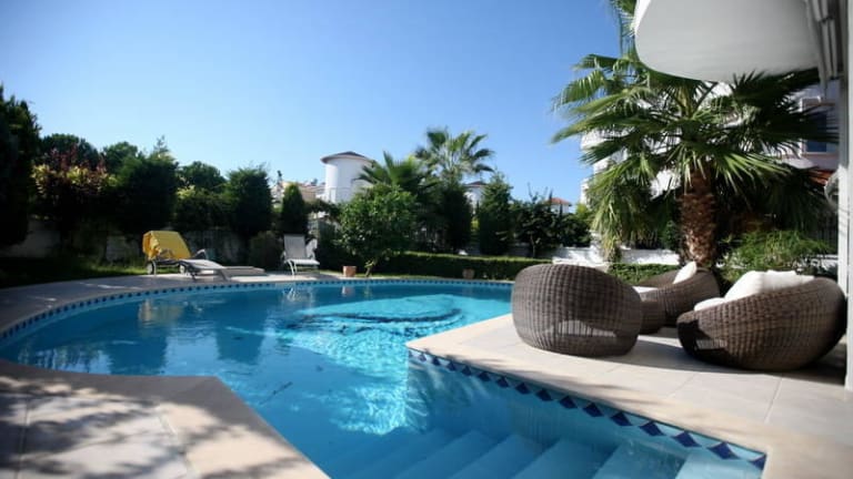 Die zauberhafte Bella Nevena Villa mit ihrem privaten Pool empfängt Sie zwischen den Ortschaften Belek und Kadriye. Die klimatisierte Villa ist modern eingerichtet und umfasst 2 großzügige Schlafzimmer mit Doppelbetten sowie 2 Badezimmer. Ein klappbares Bett und die ausziehbare Couch im Wohnzimmer bieten zwei weitere Schlafmöglichkeiten. In dem geräumigen Wohnbereich steht Ihnen eine gemütliche Sitzecke und ein Flachbild-TV zur Verfügung. Die Küche im amerikanischen Stil ist voll ausgestattet, so dass Sie problemlos Ihre Mahlzeiten zubereiten können. Ein Esstisch ist ebenfalls vorhanden. Gerne können Sie auch den möblierten Wintergarten für gemütliche Runden nutzen. Auf der Terrassen stehen hochmoderne und bequeme Gartenmöbel für Sie bereit, auf denen Sie direkt am privaten Pool entspannen können. Die Liegestühle laden zum Sonnenbaden ein.