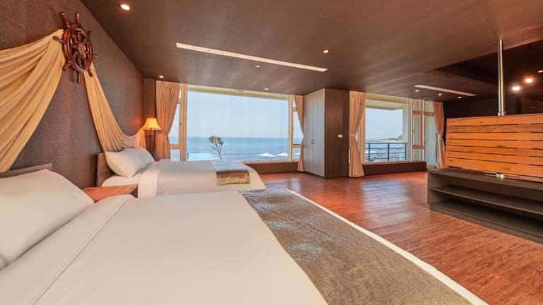 Das Ferry of Love Homestay in Shimen bietet seinen Gästen einen traumhaften Aufenthalt mit Meerblick. Genießen Sie die Annehmlichkeiten wie den Garten, die Terrasse, das Restaurant und die Bar. WLAN und Parkplätze stehen kostenlos zur Verfügung. Die Unterkünfte sind modern und komfortabel eingerichtet und verfügen über ein eigenes Badezimmer, Klimaanlage, einen Flachbild-TV und einen Kühlschrank. Starten Sie jeden Morgen mit einem leckeren amerikanischen oder vegetarischen Frühstück in den Tag. Der Strand Laomei und der MRT-Bahnhof Tamsui sind in der Nähe und der Flughafen Taipeh-Songshan ist gut erreichbar.