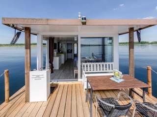 Das Boot besitzt zwei Schlafzimmer, ein Wohnzimmer und eine gut ausgestattete Küche mit Kühlschrank und Herdplatte. Weiterhin gibt es ein Badezimmer mit Dusche. Zur Ausstattung gehören ein Flachbild-TV sowie Handtücher und Bettwäsche, die bereitgestellt werden. Eine Terrasse mit Flussblick lädt zum Entspannen ein.