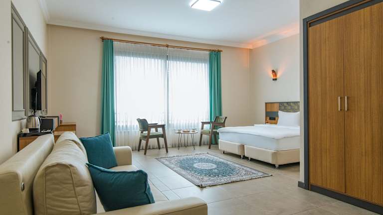 Die gastronomischen Einrichtungen umfassen ein Restaurant, ein Café und eine Bar, die türkische Küche serviert. Ein halal-zubereitetes Frühstück wird angeboten, und es sind auch vegetarische, halal-zubereitete und vegane Optionen verfügbar. Das Hotel bietet ebenfalls Kindermenüs an.