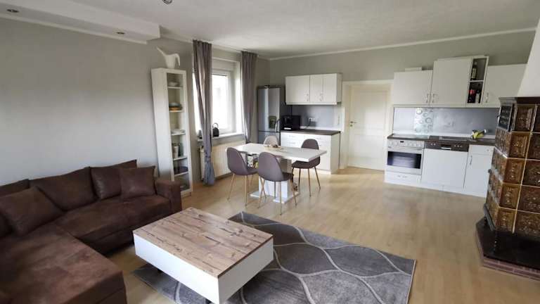 Die Ferienwohnung verfügt über zwei Schlafzimmer und ein Wohnzimmer mit einem Flachbild-TV. Die voll ausgestattete Küche beinhaltet einen Kühlschrank und Geschirrspüler. Es gibt zwei Badezimmer, die jeweils mit einer Dusche ausgestattet sind. Handtücher und Bettwäsche werden bereitgestellt.