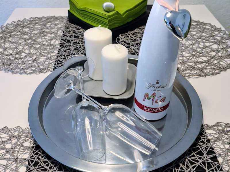 Die Ferienwohnung umfasst ein Schlafzimmer, ein Wohnzimmer, eine voll ausgestattete Küche mit Kühlschrank und Kaffeemaschine sowie ein Badezimmer mit Dusche und Haartrockner. Handtücher und Bettwäsche werden bereitgestellt.