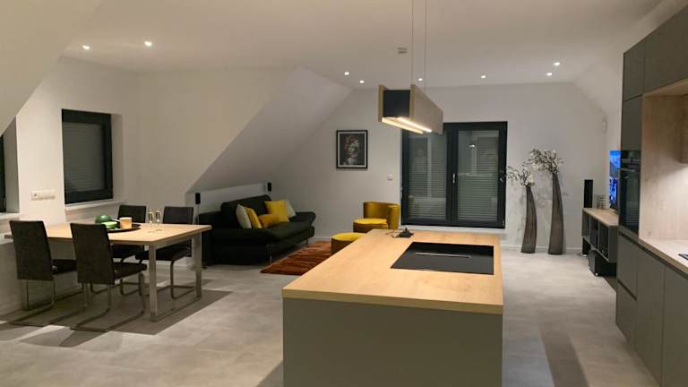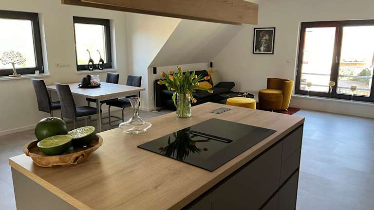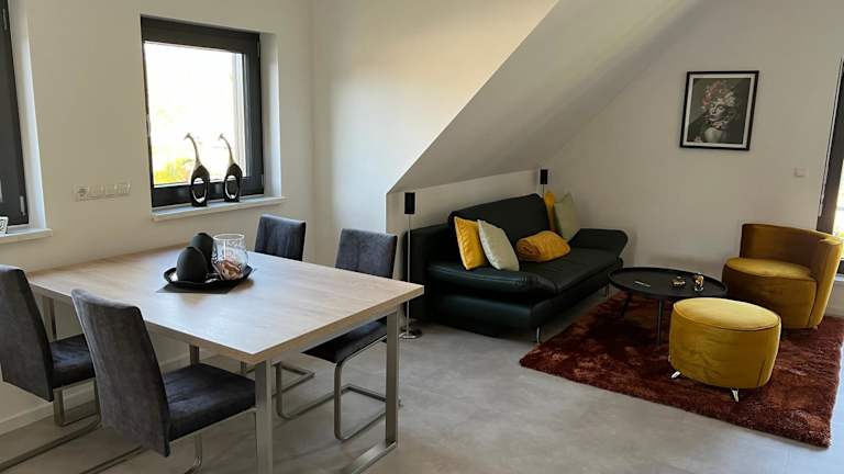 Die Ferienwohnung verfügt über ein Schlafzimmer, ein Wohnzimmer mit einem Flachbild-TV mit Satellitenprogrammen und eine voll ausgestattete Küche, die unter anderem einen Kühlschrank und einen Geschirrspüler umfasst. Des Weiteren gibt es ein Badezimmer mit einer Dusche. Handtücher und Bettwäsche werden zur Verfügung gestellt.
