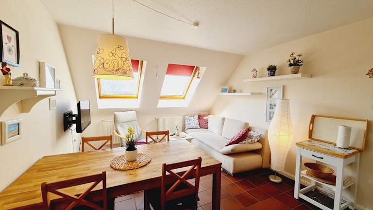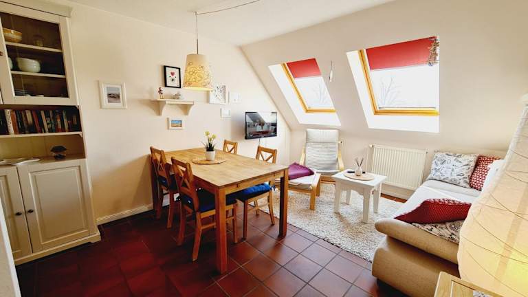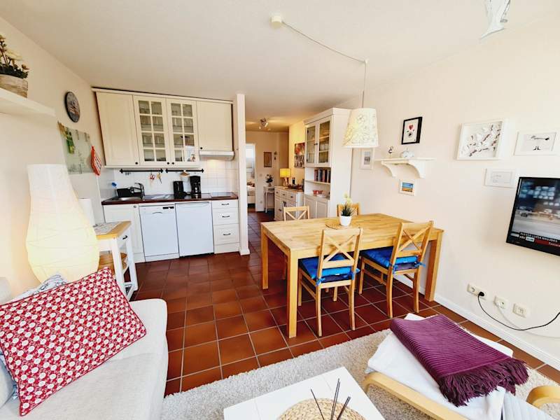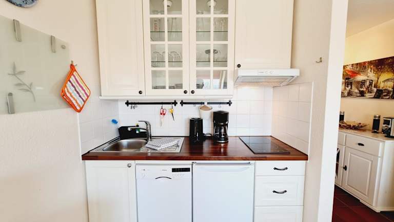 Die Ferienwohnung verfügt über eine voll ausgestattete Küche mit Kühlschrank, Geschirrspüler und Kaffeemaschine. Handtücher und Bettwäsche können gegen Aufpreis bereitgestellt werden.