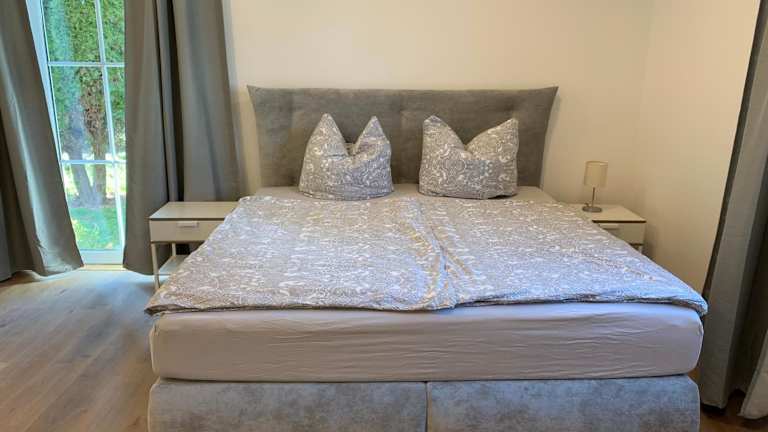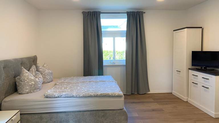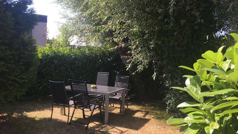 Das Apartment der FeWo an der Warnow verfügt über ein gemütliches Schlafzimmer, ein modernes Badezimmer und eine voll ausgestattete Küchenzeile. Die Einrichtung ist komfortabel und zeitgemäß. Zur Ausstattung gehören auch Bettwäsche, Handtücher und ein Flachbild-TV. Von der Terrasse aus haben Sie einen schönen Blick auf den Garten.