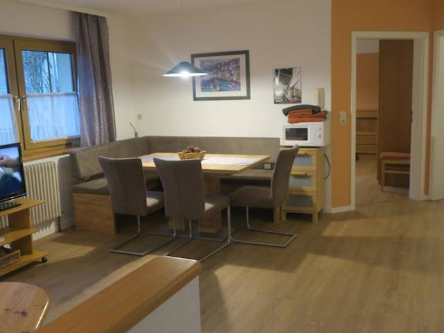 Die Fewo Breitenlesau verfügt über eine voll ausgestattete Küche, die mit einem Kühlschrank, Geschirrspüler, Ofen, Mikrowelle und Herdplatte ausgestattet ist. Zudem stehen eine Kaffeemaschine und ein Wasserkocher zur Verfügung.