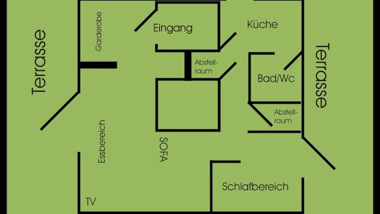 Die Ferienwohnung besteht aus einem Schlafzimmer und einem Badezimmer mit Dusche und Haartrockner. Zur Ausstattung gehören ein Satelliten Flachbild-TV sowie eine gut ausgestattete Küche mit Kühlschrank, Ofen und Mikrowelle.
