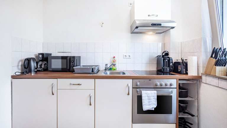 Die Ferienwohnung besteht aus einem Schlafzimmer, einem Wohnzimmer und einer voll ausgestatteten Küche, die mit einem Kühlschrank und einer Kaffeemaschine ausgestattet ist. Das Badezimmer verfügt über eine Badewanne und kostenlose Pflegeprodukte. Handtücher und Bettwäsche werden bereitgestellt.