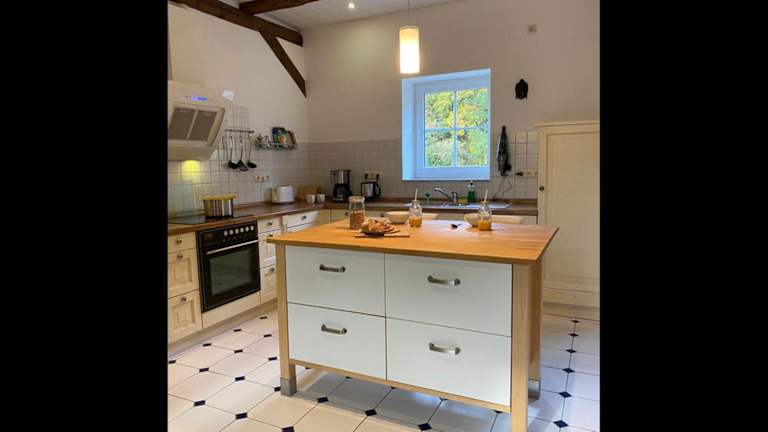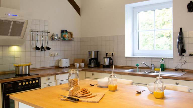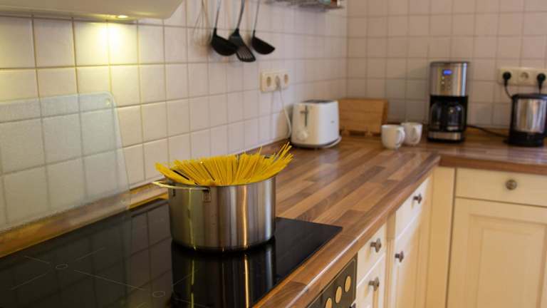 Die Ferienwohnung verfügt über eine voll ausgestattete Küche, die mit einem Kühlschrank und einer Kaffeemaschine ausgestattet ist. Verpflegungsoptionen sind nicht weiter spezifiziert, da keine zusätzlichen Informationen vorliegen.