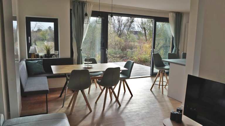 Die Unterkunft befindet sich in der Nähe des Flusses, umgeben von einer grünen Gartenlandschaft, etwa 28 km von Kloster Chorin und 40 km von der Stadthalle Bernau entfernt. Der nächstgelegene Flughafen ist der Flughafen Berlin Brandenburg, der sich 94 km entfernt befindet.