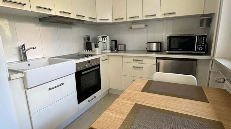 Die Ferienwohnung verfügt über kostenloses WLAN, einen Satelliten-Flachbild-TV, eine Waschmaschine und eine voll ausgestattete Küche mit Kühlschrank und Ofen. Handtücher und Bettwäsche werden bereitgestellt. Allergikerfreundliche Zimmer sind ebenfalls verfügbar.