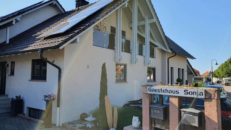 Das Gästehaus Sonja ist eine gemütliche Pension in einer ruhigen Wohngegend am Stadtrand von Rust. Ideal gelegen, erreichen Sie den Europa-Park in nur 15 Gehminuten. Die Unterkunft bietet moderne Vierbettzimmer mit eigenem Eingang, Fußbodenheizung, TV und eigenem Bad. Kostenloses WLAN und ein Babybett sind ebenfalls vorhanden. Genießen Sie jeden Morgen ein reichhaltiges Frühstück im Frühstücksraum. Die Pension liegt auch in der Nähe von Naturschutzgebieten und Städten wie Freiburg, Straßburg und Basel. Die Autobahn A5 ist ebenfalls nur 5 Minuten entfernt.