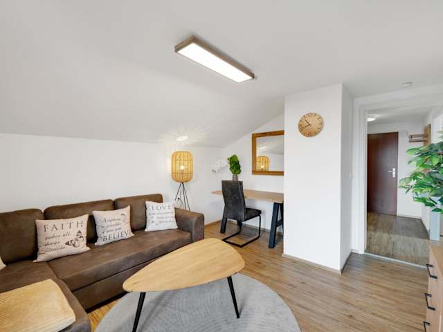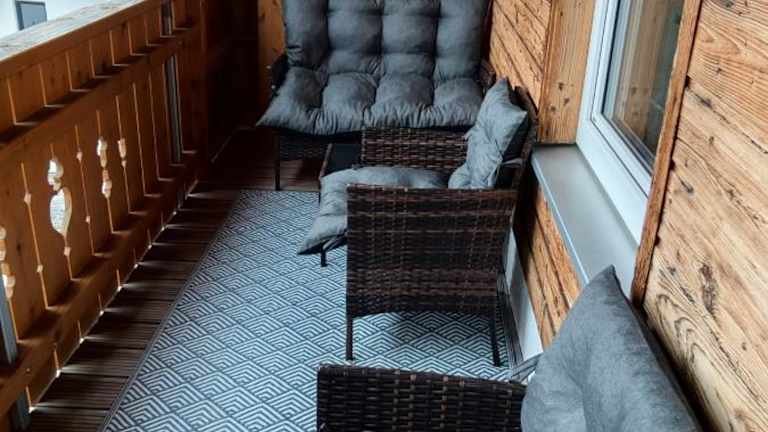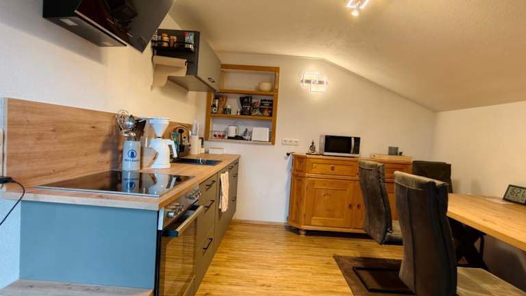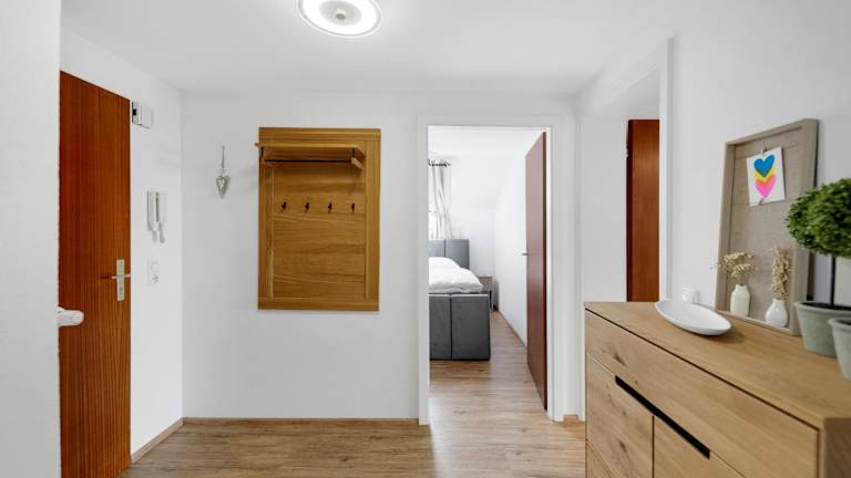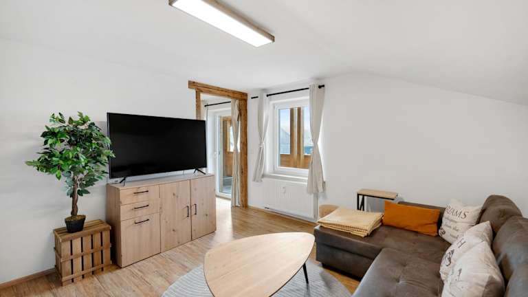 Die Ferienwohnung verfügt über ein Schlafzimmer, ein Wohnzimmer und ein Badezimmer mit Dusche. Zur Ausstattung gehören ein Flachbild-TV sowie eine gut ausgestattete Küche einschließlich Kühlschrank und Geschirrspüler. Ein Balkon mit Bergblick ist ebenfalls vorhanden.