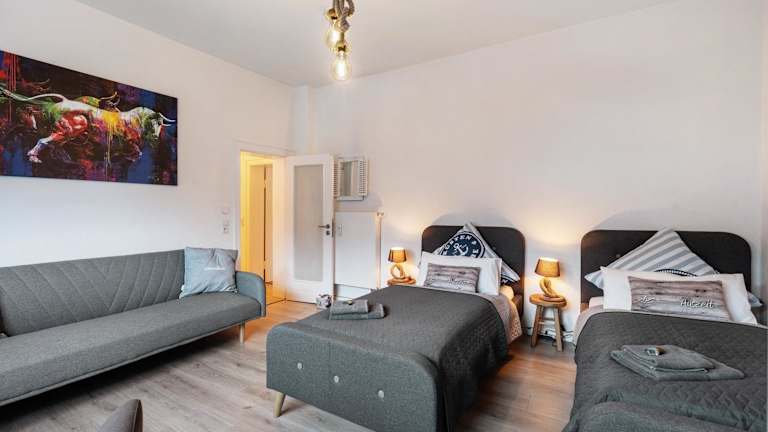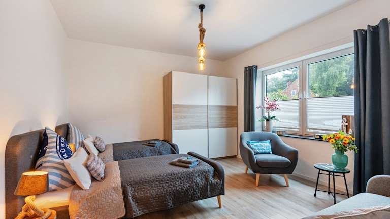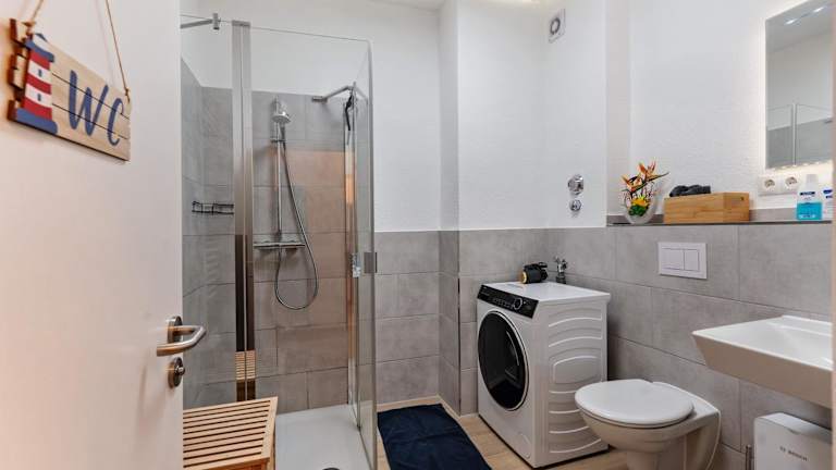 Die Ferienwohnung verfügt über 2 Schlafzimmer und eine gut ausgestattete Küche mit Kühlschrank und Geschirrspüler. Ein Badezimmer mit Dusche, kostenlosen Pflegeprodukten und einer Waschmaschine ist ebenfalls vorhanden. Handtücher und Bettwäsche werden bereitgestellt.