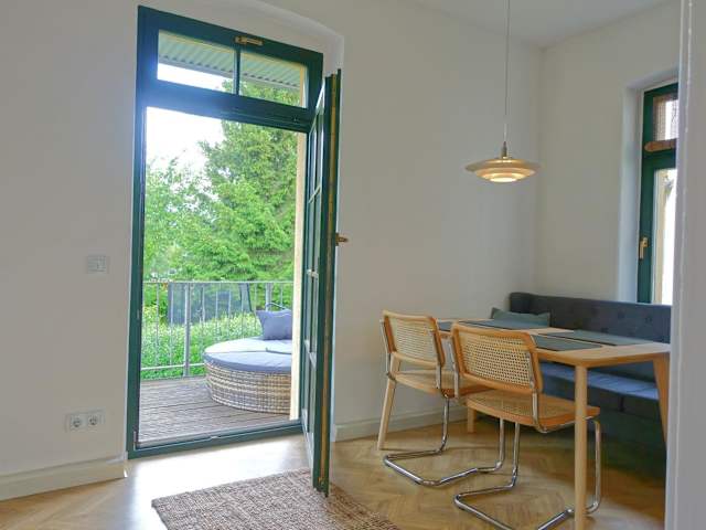 Die FEWO mit Sauna & Gartenblick bietet Übernachtungsmöglichkeiten in einer ruhigen Umgebung. Die Unterkunft verfügt über einen Balkon und bietet Zugang zu einer Sauna. Zudem stehen den Gästen ein kostenloser Privatparkplatz und kostenloses WLAN zur Verfügung.