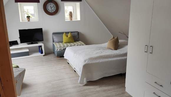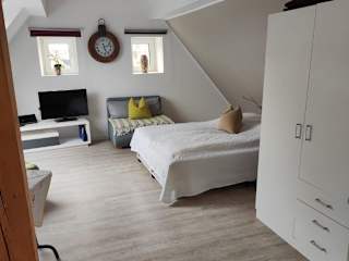 Die Ferienwohnung bietet ein Schlafzimmer und eine Küchenzeile, die mit einem Kühlschrank und einem Geschirrspüler ausgestattet ist. Zudem verfügen die Räume über einen Flachbild-TV, einen Sitzbereich sowie ein Bad mit Dusche. Handtücher und Bettwäsche werden bereitgestellt. Allergikerfreundliche Zimmer sind verfügbar.