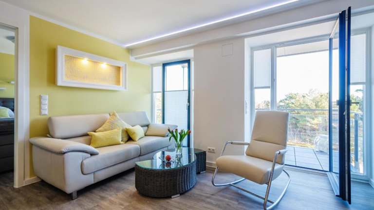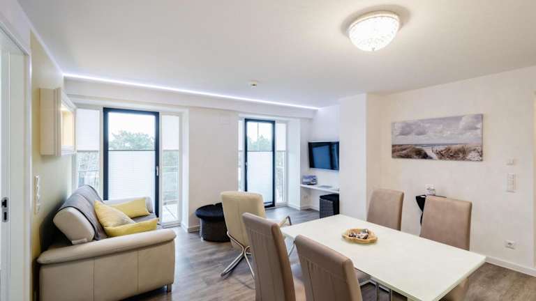 Das Apartment in der FeWo Prora - Sanddüne verfügt über 2 Schlafzimmer, ein Wohnzimmer, eine gut ausgestattete Küche und ein Badezimmer. Vom Balkon aus können Sie den Blick auf das Meer genießen. Das Apartment ist mit einem Flachbild-TV und kostenfreiem WLAN ausgestattet. Handtücher und Bettwäsche können gegen Aufpreis zur Verfügung gestellt werden.