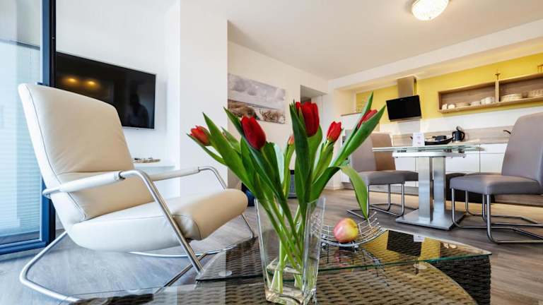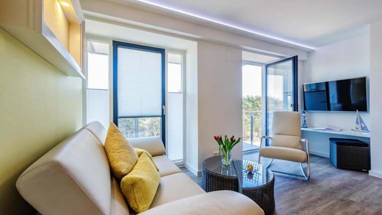 Verbringen Sie Ihren Strandurlaub in der FeWo Prora - Sanddüne in Binz. Das Apartment liegt nur 200 m vom Strand entfernt und bietet mit seinem Restaurant und kostenfreiem WLAN den perfekten Ort für einen entspannten Urlaub. Genießen Sie den Meerblick vom Balkon aus und nutzen Sie die gut ausgestattete Küche, um Ihre eigenen Mahlzeiten zuzubereiten. Die Umgebung lädt zum Wandern ein und ein Fahrradverleih ist ebenfalls verfügbar. Entdecken Sie die Schönheit der Region und besuchen Sie Sehenswürdigkeiten wie das Kap Arkona und die Marienkirche Stralsund.