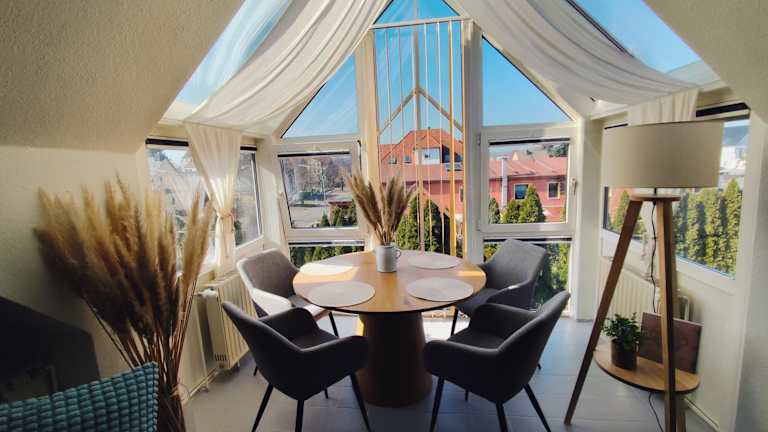 Die Unterkunft FeWo - SEEluft am Zwenkauer See bietet einen Garten und Stadtblick. Sie verfügt über kostenlose Parkmöglichkeiten, einen Geldautomaten und kostenloses WLAN.