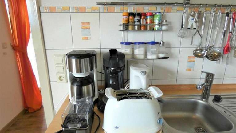 Die Ferienwohnung besteht aus einem Schlafzimmer, einem Wohnzimmer sowie einer voll ausgestatteten Küche, die unter anderem mit einem Geschirrspüler und einer Kaffeemaschine ausgestattet ist. Ein Badezimmer mit Dusche und kostenlosen Pflegeprodukten ist ebenfalls vorhanden. Handtücher und Bettwäsche werden bereitgestellt.