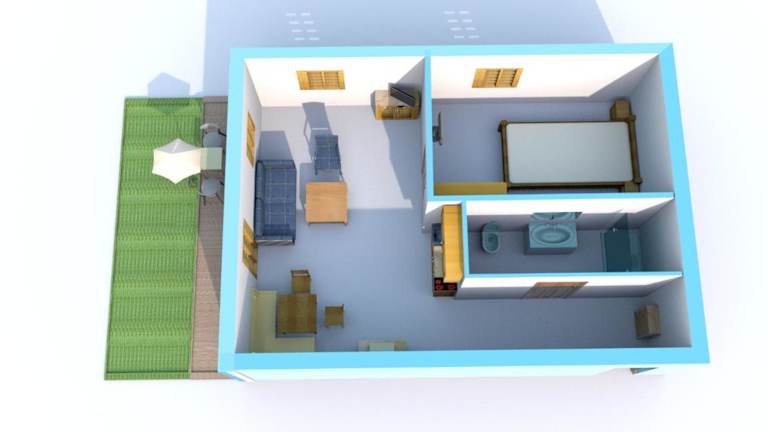 Die Ferienwohnung besteht aus einem Schlafzimmer, einem Wohnzimmer, einem Badezimmer mit Dusche sowie einer gut ausgestatteten Küchenzeile, die mit einem Kühlschrank und einer Mikrowelle ausgestattet ist. Handtücher und Bettwäsche werden zur Verfügung gestellt.