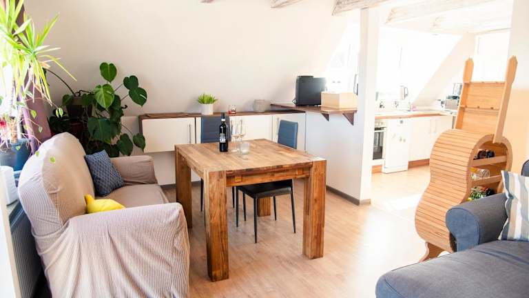 Die Ferienwohnung verfügt über ein Schlafzimmer, ein Badezimmer mit Dusche, eine gut ausgestattete Küchenzeile mit Kühlschrank und Geschirrspüler sowie einen Flachbild-TV mit Satellitenkanälen. Handtücher und Bettwäsche werden zur Verfügung gestellt. Die Unterkunft bietet Allergikerfreundliche Zimmer und eine Terrasse mit Grillmöglichkeiten.