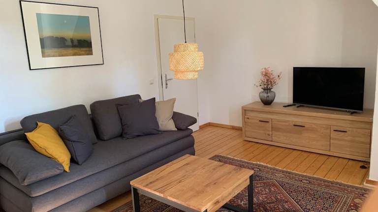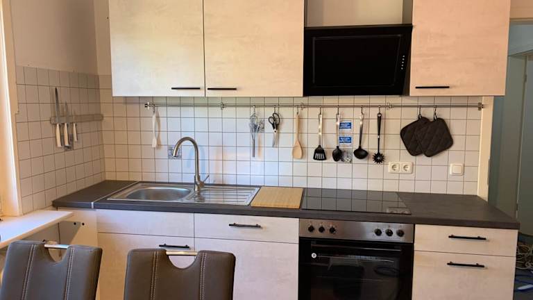 Die Ferienwohnung besteht aus zwei Schlafzimmern, einem Wohnzimmer und einer voll ausgestatteten Küche. Die Küche beinhaltet einen Kühlschrank und eine Kaffeemaschine. Des Weiteren steht ein Badezimmer mit einer Badewanne und einem Haartrockner zur Verfügung. Handtücher und Bettwäsche werden bereitgestellt.