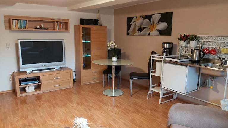 Das Fewo Wolf in Einbeck bietet eine komfortable Unterkunft mit kostenfreiem WLAN und Privatparkplätzen. Das Apartment verfügt über ein Schlafzimmer, ein Wohnzimmer, eine voll ausgestattete Küchenzeile und ein Badezimmer. Die Unterkunft liegt in der Nähe von Sehenswürdigkeiten wie der Domäne Marienburg und der Universität Göttingen. Der Flughafen Kassel-Calden ist ebenfalls gut erreichbar.