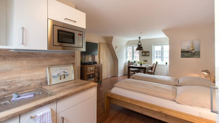Das fewo1846 - Kajuete am Nordermarkt ist ein maritim eingerichtetes Studio-Apartment, das modernen Komfort bietet. Es handelt sich um eine Nichtraucherunterkunft, die mit einem Privatparkplatz ausgestattet ist. Kostenfreies WLAN steht den Gästen zur Verfügung. Das Mindestalter für den Check-in beträgt 18 Jahre, und Haustiere sind nicht gestattet. Ein Check-in nach den regulären Zeiten ist nach vorheriger Absprache möglich.