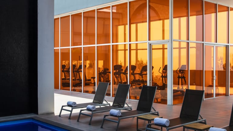 Das Hotel bietet sowohl einen Innen- als auch einen Außenpool, die ideal für Aquatraining und aktive Entspannung geeignet sind. Ein Fitnessraum steht für die Nutzer bereit, die nach einem aktiven Tag trainieren möchten.