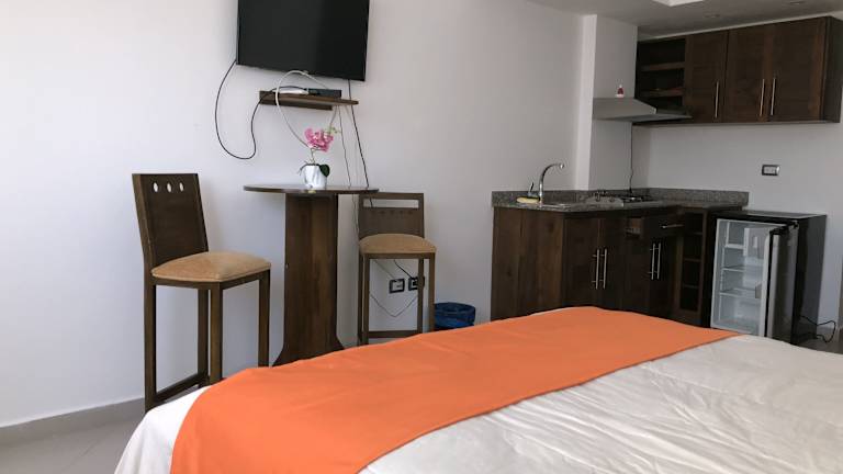 Die Zimmer im Figaro Hotel Samana sind komfortabel und bieten eine Küchenzeile, einen Flachbild-Kabel-TV und ein eigenes Bad. Einige Zimmer verfügen über eine Terrasse mit Bergblick. Alle Zimmer sind klimatisiert und verfügen über einen Sitzbereich sowie einen Kleiderschrank.