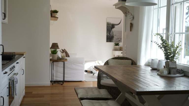 Die Ferienwohnung umfasst 1 Schlafzimmer, ein Wohnzimmer mit Flachbild-TV sowie eine gut ausgestattete Küche mit Kühlschrank und Geschirrspüler. Das Badezimmer ist mit einer Dusche ausgestattet. Handtücher und Bettwäsche werden bereitgestellt.
