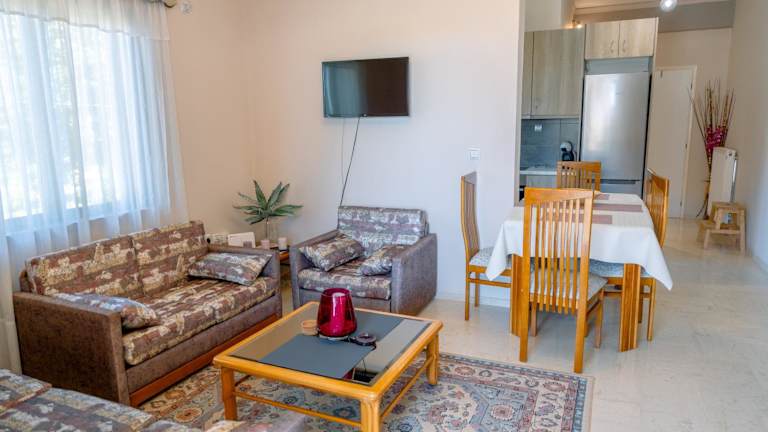 Das klimatisierte Apartment im Filoxenia House besteht aus zwei Schlafzimmern, einem Wohnzimmer, einer voll ausgestatteten Küche mit Kühlschrank und Kaffeemaschine sowie einem Badezimmer mit Dusche. Handtücher und Bettwäsche werden gestellt. WLAN ist in der gesamten Unterkunft kostenfrei verfügbar.