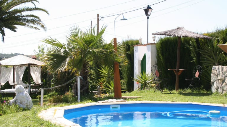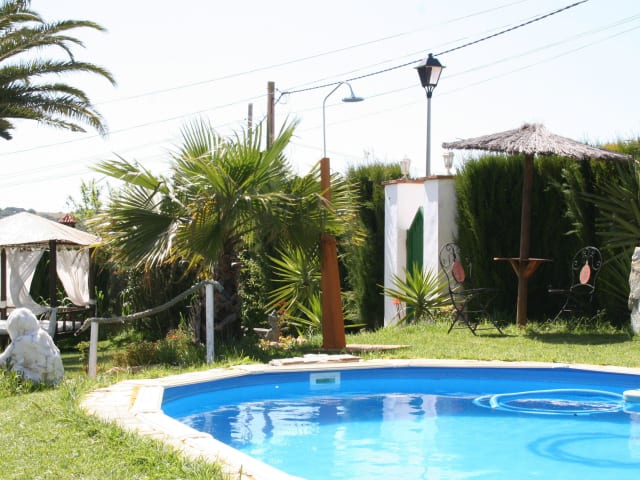 Die Finca in andalusischem Stil liegt in einer gepflegten Gartenanlage mit Pool, der den Gästen zur Verfügung steht. Vom Turmzimmer mit seiner Dachterrasse aus, hat man einen traumhaften Blick über das Campo de Vejer de la Frontera.