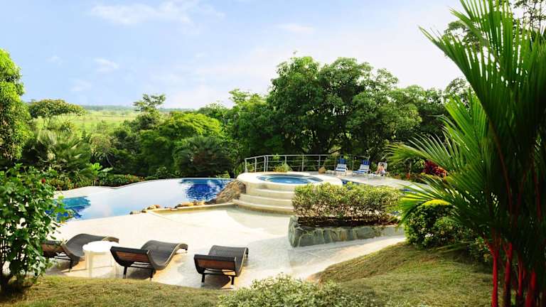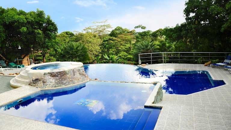Erleben Sie einen erholsamen Aufenthalt in der Finca El Jecho, einer charmanten Lodge im Landhausstil, nur 1,5 km vom Ökoparque Los Ocarros entfernt. Genießen Sie die ruhige Atmosphäre, den weitläufigen Garten und den erfrischenden Außenpool. Die Bungalows sind gemütlich eingerichtet und verfügen über eine voll ausgestattete Küche sowie ein eigenes Bad. Freuen Sie sich auf Grillmöglichkeiten, eine Terrasse und verschiedene Freizeiteinrichtungen wie ein Spielezimmer und einen Kinderspielplatz. Die Lodge befindet sich in günstiger Lage, nur 82 km vom internationalen Flughafen El Dorado und 1 km vom Busbahnhof Cumaral entfernt.