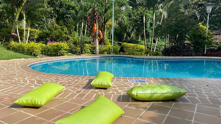 Die Finca Villa Chalet Del Rio Cali Farm Villa Chalet Cali River in Cali ist eine beeindruckende Villa mit einem Außenpool und einer Klimaanlage. Die Villa bietet 4 Schlafzimmer, 5 Badezimmer, eine voll ausgestattete Küche und eine Terrasse mit Poolblick. WLAN und Privatparkplätze stehen kostenfrei zur Verfügung. Die Villa liegt in der Nähe von Sehenswürdigkeiten wie dem Jorge Isaacs Theater und dem Petersdom.