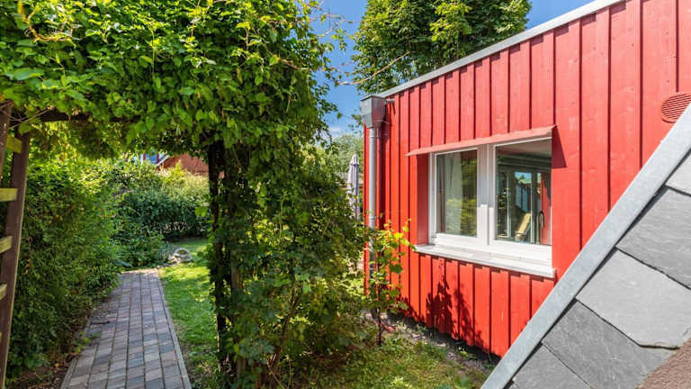 Die Finnhütte bietet einen Balkon sowie einen Garten und verfügt über Terrassen zur Entspannung. WLAN ist kostenfrei verfügbar, ebenso der Parkplatz vor Ort. Die Ferienunterkunft ist ideal für Gäste, die Ruhe und Meerblick suchen und mit Haustieren anreisen möchten, da Hunde willkommen sind und das Grundstück umzäunt ist.