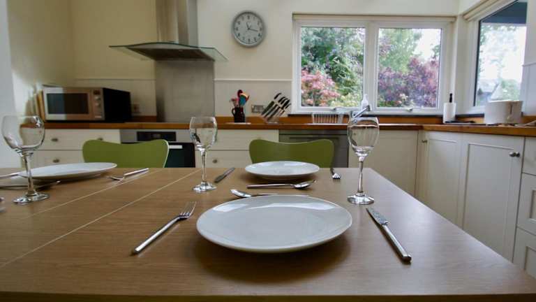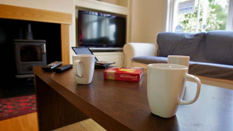 Das Ferienhaus verfügt über drei Schlafzimmer und ein Wohnzimmer, das mit einem Flachbild-TV und einem DVD-Player ausgestattet ist.