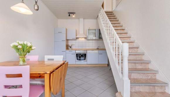 Die Küche der Unterkunft ist mit Kühlschrank, Geschirrspüler, Ofen, Kaffeemaschine und Wasserkocher ausgestattet.