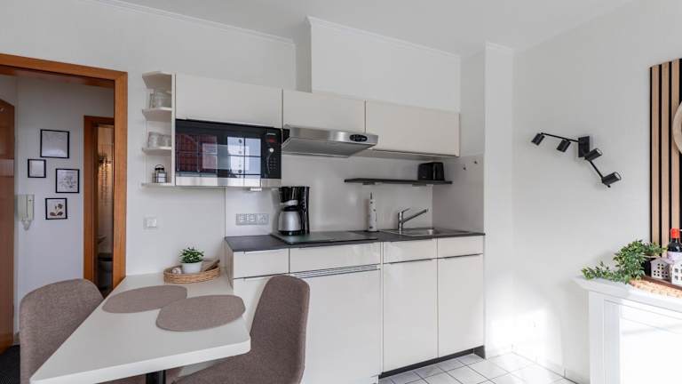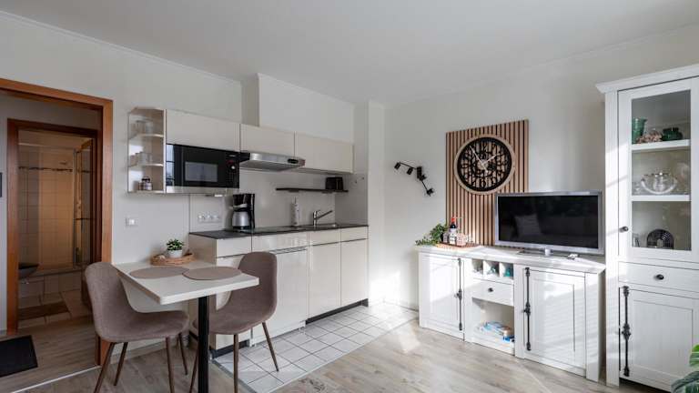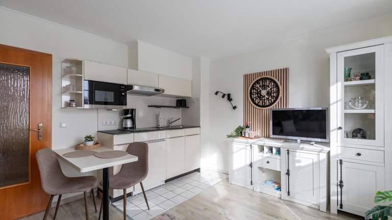 Die Ferienwohnung bietet ein Schlafzimmer sowie eine voll ausgestattete Küche mit Kühlschrank und Geschirrspüler. Zur Ausstattung gehören zudem Satelliten-TV und eine Waschmaschine. Auf Anfrage können Handtücher und Bettwäsche gegen Aufpreis bereitgestellt werden.