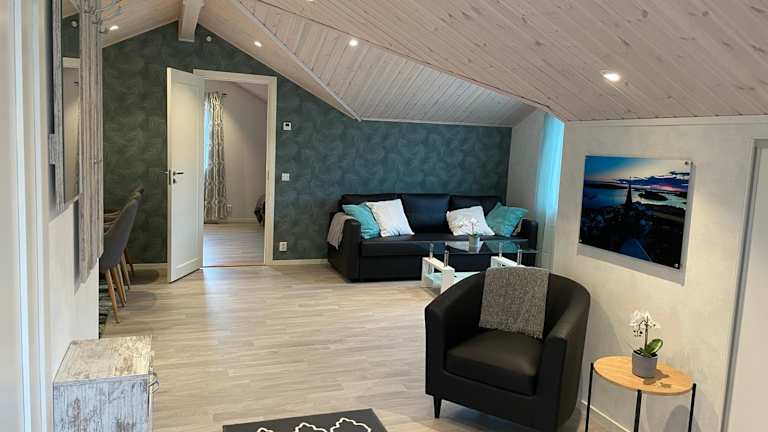 Das Nyproducerad 80kvm utanför Fjällbacka liegt etwa 12 km von Havets Hus entfernt und bietet eine idyllische Lage inmitten der Natur. Von hier aus können Sie die Schönheit der Umgebung genießen und die zahlreichen Aktivitäten und Sehenswürdigkeiten in der Nähe erkunden. Der Flughafen Trollhattan ist etwa 87 km entfernt.