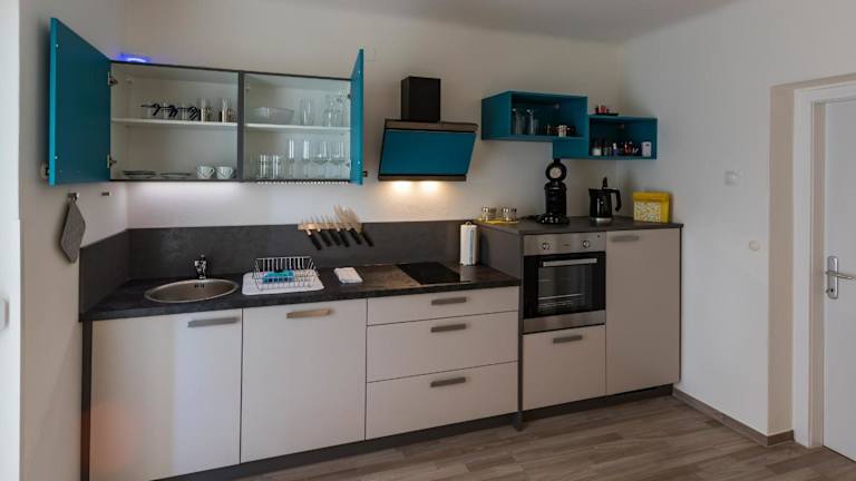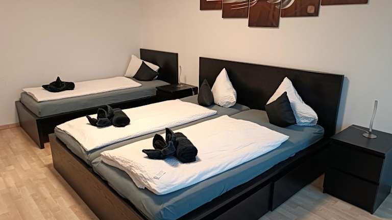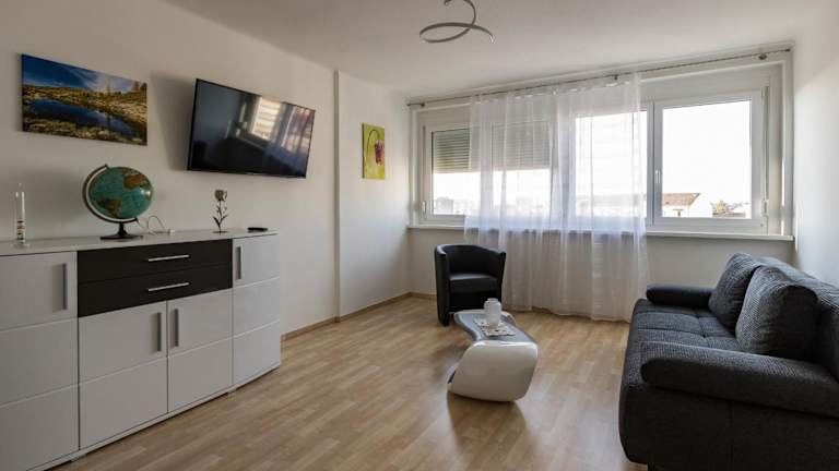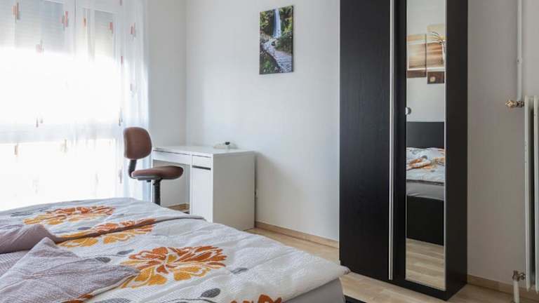 Das Zimmer der Ferienwohnung bietet Platz für Gäste und ist mit einem Balkon ausgestattet. Es umfasst ein Schlafzimmer und ein Wohnzimmer. Die gut ausgestattete Küche ist mit einem Kühlschrank und Geschirrspüler versehen. Handtücher sowie Bettwäsche sind vorhanden.