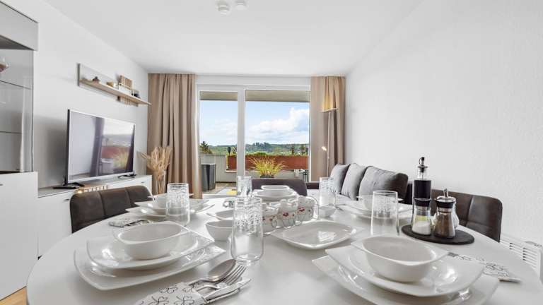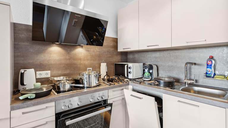 Essenslieferung in die Unterkunft ist möglich. Die Ferienwohnung verfügt über eine voll ausgestattete Küche mit Kühlschrank und Kaffeemaschine, bietet jedoch keine weiteren Informationen zu gastronomischen Angeboten.