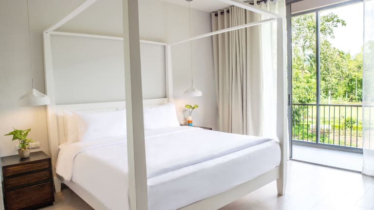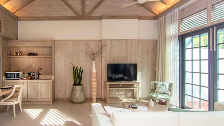 Die komfortablen Zimmer sind klimatisiert und in sanften Erdtönen gestaltet. Sie verfügen über Kabel-TV, einen Safe, ein Schlafsofa und sind mit einem eigenen Badezimmer ausgestattet, das eine Dusche, Bademäntel und Hausschuhe umfasst. Gäste können vom Balkon oder der Terrasse einen Blick auf den Garten genießen. Des Weiteren sind eine Kochnische mit Kühlschrank, Mikrowelle und Kaffee-/Teekocher vorhanden. Zusätzliche Annehmlichkeiten umfassen ein Bügelset, ein Telefon, einen TV-Gerät, Radio und kostenloses WLAN.
