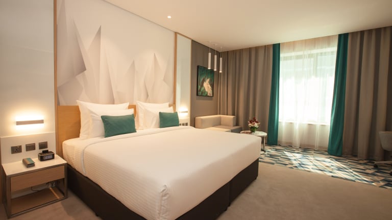 Located within 1km to Dubai International Airport Flora Inn Airport Hotel features modern luxurious accommodation restaurant and café offering Indian, Arabic and International cuisine. It offers a temperature controlled outdoor pool, a kid’s pool, fully equipped health club and extensive spa treatments. Guests receive complimentary Hi Speed Wi-Fi in rooms and all public areas of the property. The renowned Dubai Creek is accessible through a 10 minute drive, while the famous Dubai Gold Souk and Spice Souk are 20 minutes away. Major shopping malls including Deira City Centre, Festival City Mall and Mirdif City Centre are within a 10 minute drive from the hotel, GGiCO Dubai Metro Station is a 10 minute walk while Dubai international Airport is a 2 minute drive. The rooms at Flora Inn Airport are decorated with natural, soft colors. They are equipped with flat-screen TVs with satellite channels. Other amenities include work desk, tea/coffee making facilities, Iron and a board, bathrobe with slippers, private bathroom with free toiletries. The hotel has its own temperature-controlled swimming pool located on roof top where guests can enjoy the sun on the deck surrounding the outdoor pool. The on-site Health Club & Wellness Centre offers massage treatments and steam, sauna. It also has state of the art fitness center with the latest cardiovascular equipment. For dinner, guests can choose from a variety of restaurants with cuisines such as Indian, Arabic and International. The coffee shop lounge offers various snacks and beverages to choose from. Garhoud is a great choice for travelers interested in sightseeing, shopping and luxury brand shopping. Rooms: 228