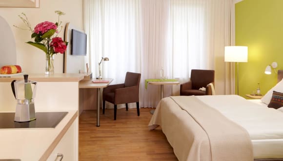 Das FLOTTWELL BERLIN – zentral in Sichtweite von Tiergarten und Potsdamer Platz gelegen – ist das Hotel für Städte- und Kulturreisende, die ganze Familie, für Fahrradurlauber und Geschäftsleute. Vom FLOTTWELL BERLIN aus liegt Ihnen Berlin buchstäblich zu Füßen. Vor unserer Haustüre finden Sie, was Reisende aus aller Welt nach Berlin zieht: Brandenburger Tor und Unter den Linden, Off-Szene und Weltkulturerbe, Museumsinsel, Kulturforum und den spannenden neuen Park am Gleisdreieck … Weltstadt und Idylle. Die Gestaltung unserer 41 Zimmer (27 m²) wird Sie zufrieden stellen. Das helle Eichenparkett strahlt wohlige Wärme, die kleine Sitzgruppe eine gemütliche Atmosphäre aus. Der großflächige Schreibtisch schafft beste Arbeitsmöglichkeiten und ist mit einem Media-Hub ausgerüstet, der mit allen mobilen Endgeräten kompatibel ist. Damit können Sie mit Ihrem Smartphone, Tablet oder Laptop ganz bequem über den 32-Zoll HD-Fernseher im Internet surfen, oder einfach nur fernsehen. In jedem Zimmer steht Ihnen eine Kitchenette zur Verfügung, für den Morgenkaffee, einen Mittagssnack oder das Nachtmahl. So bleibt man frei und fühlt sich zuhause. Unser Starterset mit Kaffee und Tee lässt sie den Tag entspannt beginnen. Wenn Sie nach 21:00 Uhr einchecken möchten, müssen Sie die Unterkunft im Voraus anrufen, um die Schlüsselübergabe entweder an der Rezeption oder am Schlüsselsafe zu arrangieren. Nachts ist das Hotel geschlossen. Bitte führen Sie daher jederzeit ihre Zimmerkarte bei sich, diese öffnet auch unseren Hotel-Seiteneingang.
