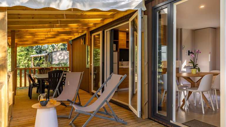 Alle Wohneinheiten im Flower Camping de Rouffiac sind mit einer Terrasse ausgestattet. Sie verfügen über eine Küchenzeile mit einem Kühlschrank, Geschirrspüler, Mikrowelle, Herdplatte sowie einer Kaffeemaschine und einem Wasserkocher. Jede Einheit hat ein eigenes Badezimmer mit einer Dusche.