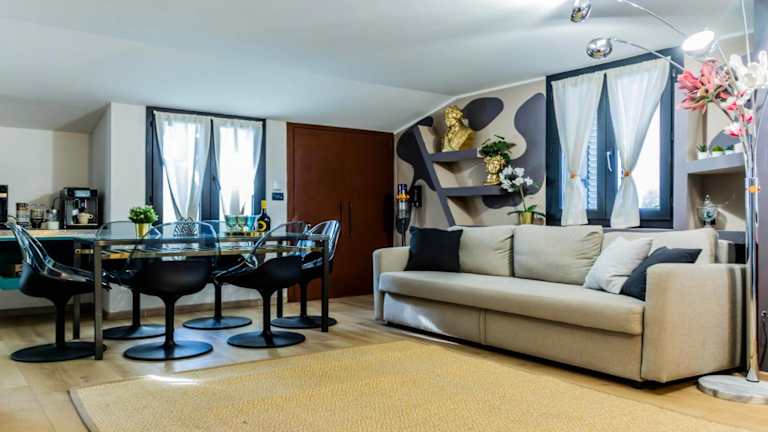 FLYTOSUITE COM Aeroporto Bologna 3 Camere con spazio comune bietet Übernachtungsmöglichkeiten mit Gartenblick. Die Unterkunft ist mit einer Terrasse und einem Balkon ausgestattet und verfügt über kostenloses WLAN.