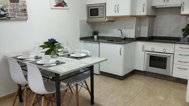Die Küche der Ferienwohnung ist mit einem Kühlschrank und einem Ofen ausgestattet, was eine Selbstversorgung ermöglicht. Verpflegungsmöglichkeiten in der Umgebung wurden nicht erwähnt.